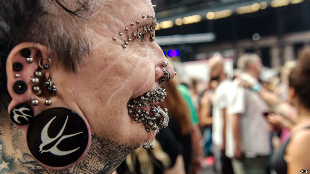Además de sus múltiples perforaciones, muchas de ellas en los genitales, Buchholz también tiene dos cuernos incrustados en la frente.