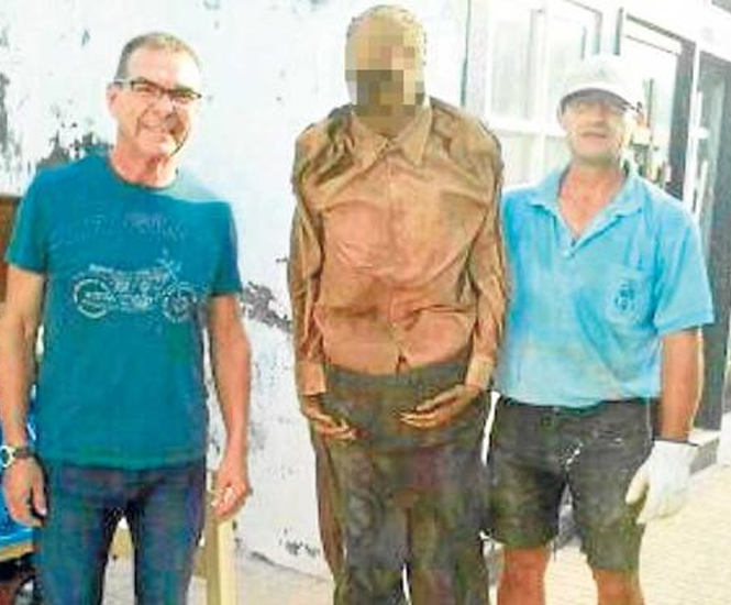 El cuerpo fue sacado de la cripta en un cementerio del sureste de España, pero al descubrir los familiares que estaba momificado, decidieron tomar la foto "para el recuerdo"