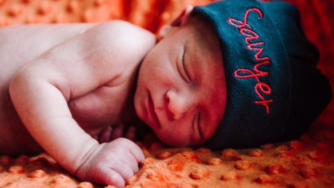 Sawyer Lacey nació como resultado de la implantación de embriones donados el año pasado.