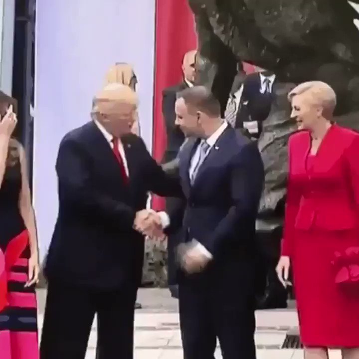 La primera dama de Polonia dejó con la mano extendida a Trump