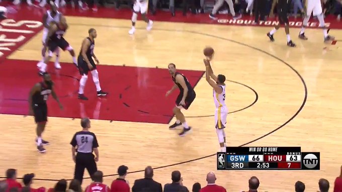 En este momento Stephen Curry entró en uno de aquellos trances anotadores que lo hacen único. Con 3 triples consecutivos, el base abrió una brecha en el marcador que supuso un gran golpe anímico para los locales, 69-76. El acierto del 2 veces MVP de la NBA contrastaba con la falta de puntería de los Rockets, negados de cara al aro y que fallaron los 14 triples que intentaron en el tercer período, algunos de ellos incomprensibles, llegando a acumular 27 errores seguidos en el partido.
