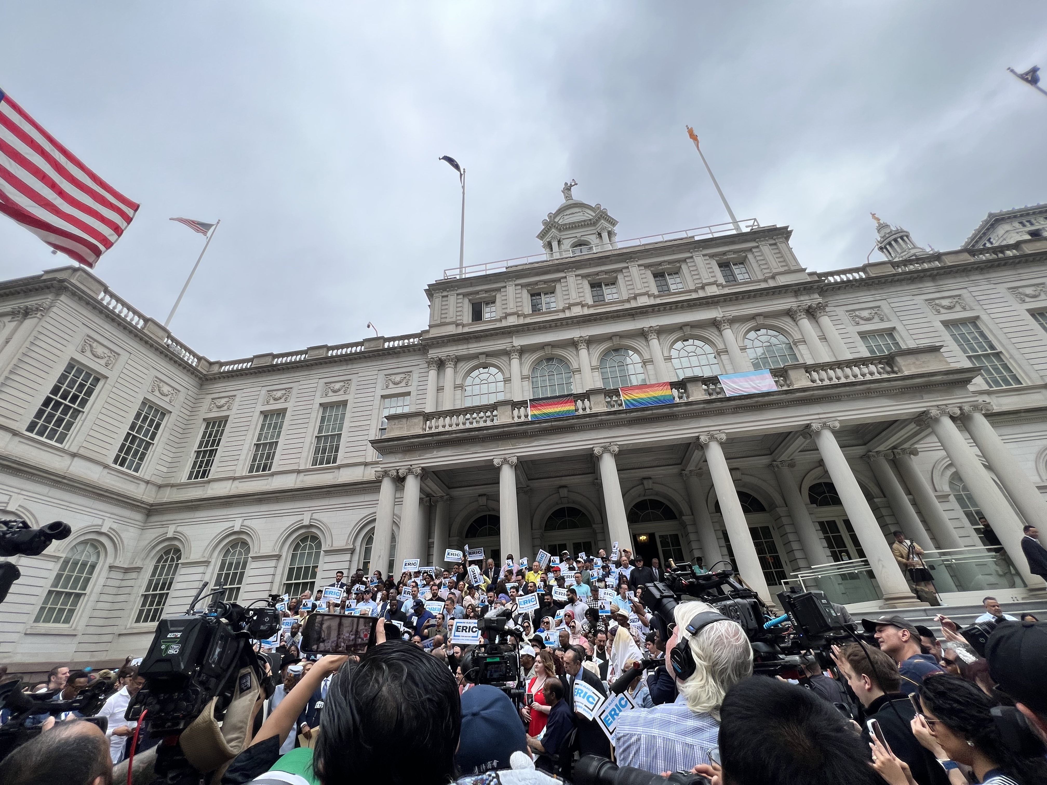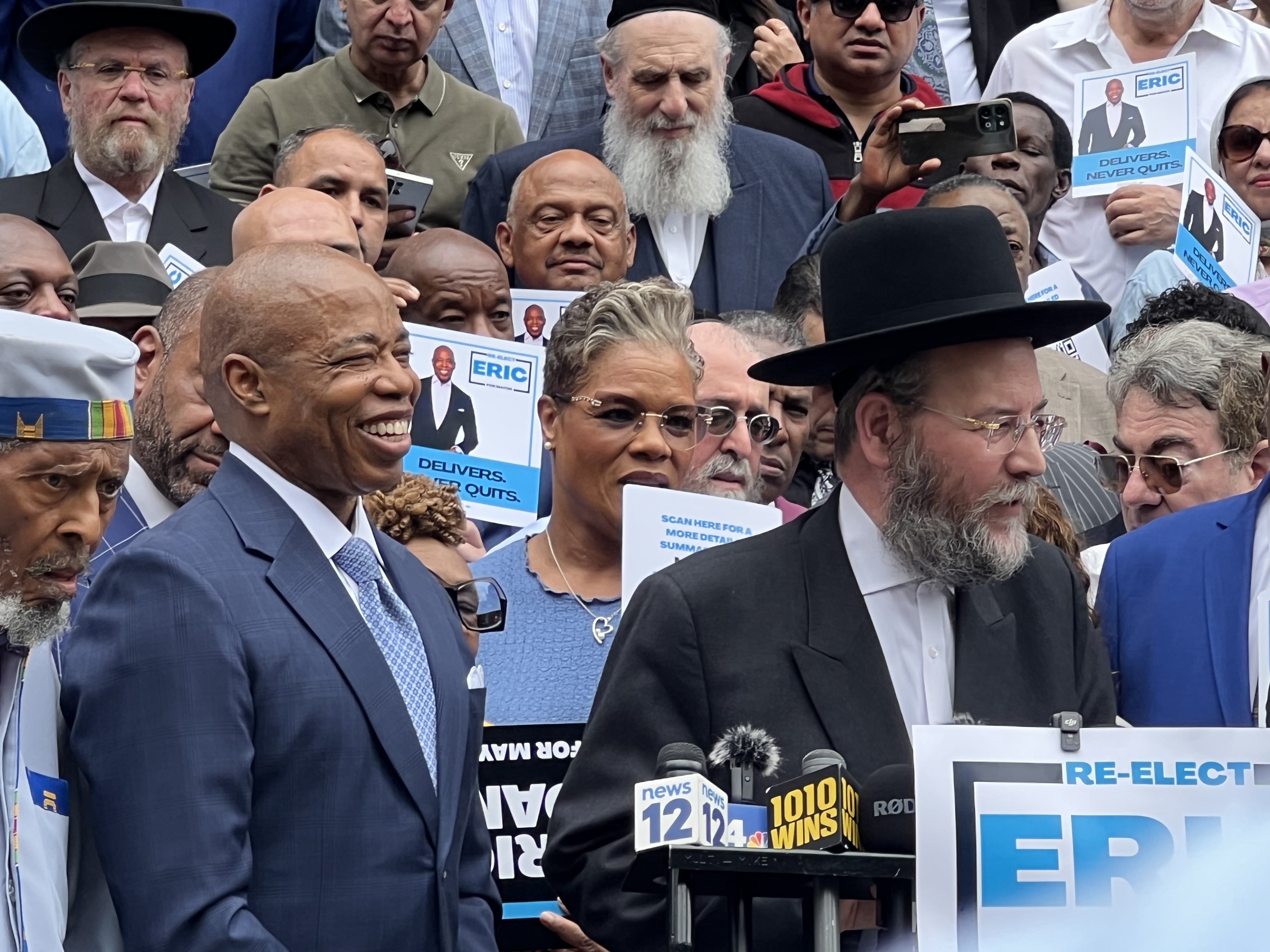 Tras hacer una oración y agradecer a los más de 300 simpatizantes que se agolparon en la Alcaldía para manifestarle su apoyo, Adams aprovechó para arremeter contra su principal rival en noviembre, Zohran Mamdani.